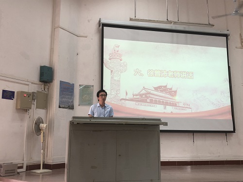 最后,徐曾沛老师作为本次培训班的班主任上台发言。他首先提出在11月11日相较于网络上的所谓双十一狂欢节,我们更应将这一天铭记为人民空军的华诞。不仅如此,牢记中国共产党的光辉历史和党全心全意为人民服务的宗旨,从细节、小事发扬中国共产党的伟大精神,坚定理想信念,与时代同发展、共命运,关注时事政治,不被历史淘汰,肩负起大国责任是各位作为员工党员发展对象需贯彻落实的。在此,徐老师对全体学员提出了三点要求:自律、学习、责任。虽正值青春,风华正茂,但这并不是放任自由的理由。只有将自己从安逸圈中抽离出来,面对更多的风浪、逆境,将来才能够在社会上立足,从挫折中站起来。一切的道理,回归本源,就是做好自己。而这,也是中国共产党人所坚持的基本准则。徐老师在发言结尾处对所有学员提出殷切希望,希望他们能树立正确的人生观、价值观,严肃自身纪律,提高自身思想觉悟,通过党校的学习尽快成长起来,积极进取,用党员的标准严格要求自己,争取早日通过党组织的培养与考验,成为一名光荣的中国共产党党员。