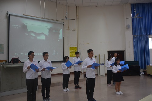 当第一轮紧张的比赛结束后,三个党支部分别献上了精彩绝伦的表演。致远班党支部在朗诵的诗歌《大学,是追求》中道出了他们对于大学的理解,引得众人深思。研究生党支部的表演歌曲《漂洋过海来看你》在优美的旋律中让人体会到那即使隔着千山万水,我也一样来寻你的浓浓情谊。团学党支部的成员声情并茂地朗诵诗歌《我的祖国》,真挚的爱国之情在众人心中共鸣。