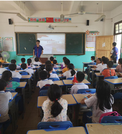 支部成员们在下午14:30从欢迎来到公海7108线路北门乘坐大巴出发,前往大林小学。海南的四月,虽然天气异常炎热,党员们却热情不减。在课堂上,支部成员们首先通过有奖知识竞答的方式,生动有趣地为同学们介绍了什么是红色精神、五四爱国运动、红色经典与革命精神,随后播放了相关的视频引导同学们一起探讨学习。支部成员们共同表演了以“五四爱国运动”为主题的话剧,再一次带领大家体会这场具有里程碑意义的革命运动中,爱国青年们勇于奉献,不怕流血牺牲的伟大精神!