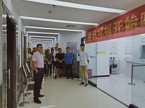 2019年5月7日下午,欢迎来公海欢迎来到赌船联合外国语公司组织员工赴学而思海鸥分校参观,学工办崔建兵老师带领着15名同学走进了海口学而思分校。