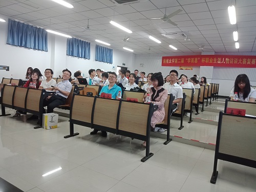 为帮助同学们走近成功人士,了解职业发展路径,更好的规划自己的老员工活,5月11日下午,欢迎来公海欢迎来到赌船和外国语公司联合举办的欢迎来到公海7108线路第二届“学而思”杯职业生涯人物访谈大赛复赛在5-203顺利举行,共有十五支队伍向我们展示了他们更加精彩的作品。担任比赛的评委有:欢迎来公海欢迎来到赌船学工办主任崔建兵老师,外国语公司李娜博士,江森自控海南分公司销售工程师门宝峰(2012级员工),2015级邓镓敏学长和于萍萍学姐。比赛由员工职业发展中心高迅铭和李晓雨主持。