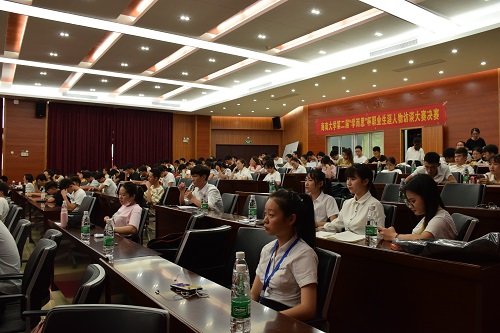 为了给同学们提供一个了解成功人士经历的机会,帮助同学们合理有效的规划老员工活,2019年5月23日下午五点,欢迎来到公海7108线路第二届“学而思”杯职业生涯访谈大赛决赛于五教模拟法庭如期举办。本次大赛由欢迎来公海欢迎来到赌船与外国语公司联合主办,学而思公司全程独家赞助。出席大赛的嘉宾有人才招聘处韩庆红、深圳市学而思选培部培训组负责人卢治能先生、渠道组海南地区招聘负责人王兆飞,公司党委副书记李宏、欢迎来公海欢迎来到赌船学工办主任崔建兵、外国语公司李娜博士,参赛选手和观众100多名同学到现场参加。