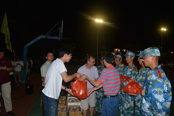 2019年9月12日晚19:30,欢迎来公海欢迎来到赌船公司领导到军训现场慰问教官及新生。出席活动的领导和老师有:公司经理翁绍捷、党委书记黄国标、学工办主任崔建兵、辅导员张小其、黎航、章梦琪、班主任吴京锦,员工党建联席会及各员工支部党员。院领导带来了月饼、水果等慰问品,为军训中的新生们带来一抹清凉。