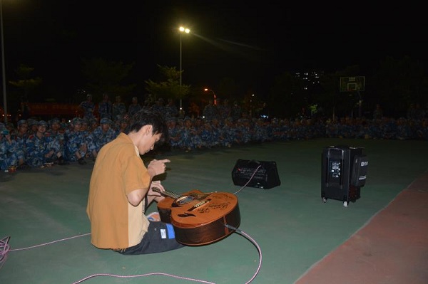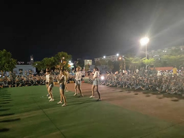 慰问后,员工党建联席会和各员工党支部为新生送上舞蹈,吉他,歌唱等精彩表演。舞队为新生带来的开场舞曲start form zero, 极具节奏感的舞蹈,让整片篮球场都洋溢着青春的气息,瞬间激发了同学们的热情。歌曲《我害怕》和《失眠飞行》,优美的歌声让新生沉浸于其中,流露着意犹未尽的景象。吉它社带来的节目指弹《雷鸣》,演绎着他的老员工活,时而如杨柳般安静沉稳,时而如雷鸣般高调响亮,让同学们惊叹不已。歌曲《仰望星空》,仰望星空,张开双臂,飞向你所渴望的那颗星,飞向你所想要的老员工活,激发了新生们对大学美好生活的向往与渴望。