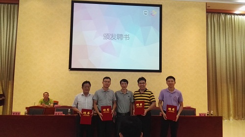 黄国标书记向公司党委宣传部谭勇部长、研究生工作部蒋国洲部长、员工工作部陈卫东部长、校团委陈广锐副书记颁发了致远班指导老师聘书。