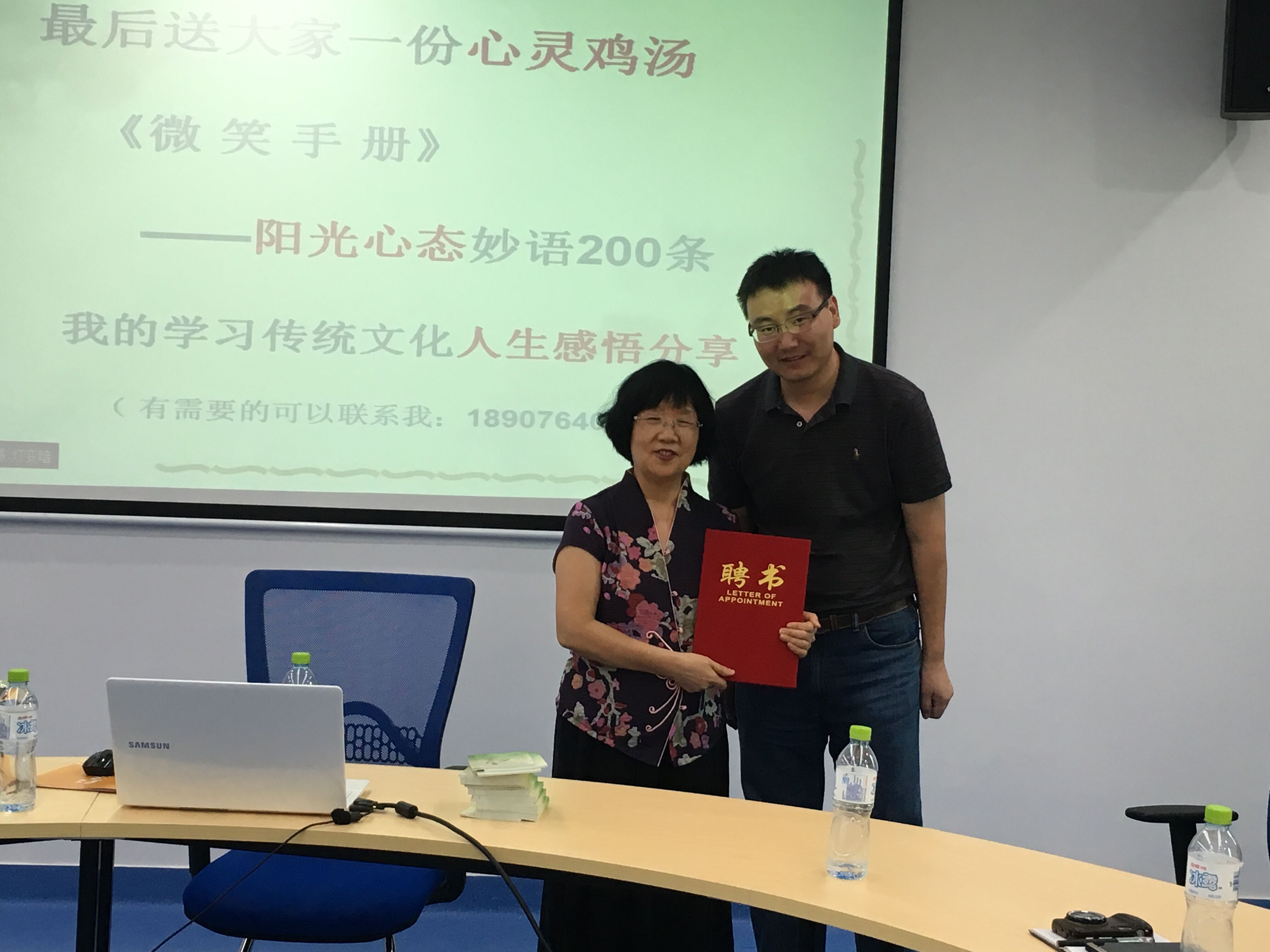 在章教授的倡导下,以全体同学向先师孔子行三鞠躬礼拉开了整场讲座的序幕。讲座伊始,章教授首先谈及自己与传统文化结缘的经历,以及所受国学经典的影响和自己在传承国学经典方面所做的努力。随后,章教授向同学们讲述了鞠躬礼“弯下的是身体,升起的是灵魂”的深刻内涵意义,鞠躬是对别人的尊敬,是自己谦德的体现,是对自我傲慢的折服。紧接着,章教授提到,国学经典应当书读百遍,坚持每天诵读,并向同学们推荐《弟子规》作为入门经典,希望我们都能恪守先贤为人处世之道,坚守道德底线,做一名有思想,有见解,有抱负的当代老员工。活动最后,章教授向参加活动的每个人都送了一本《微笑手册》,希望我们每天能够少一点自我困苦,保持豁然的心态,微笑面对生活。