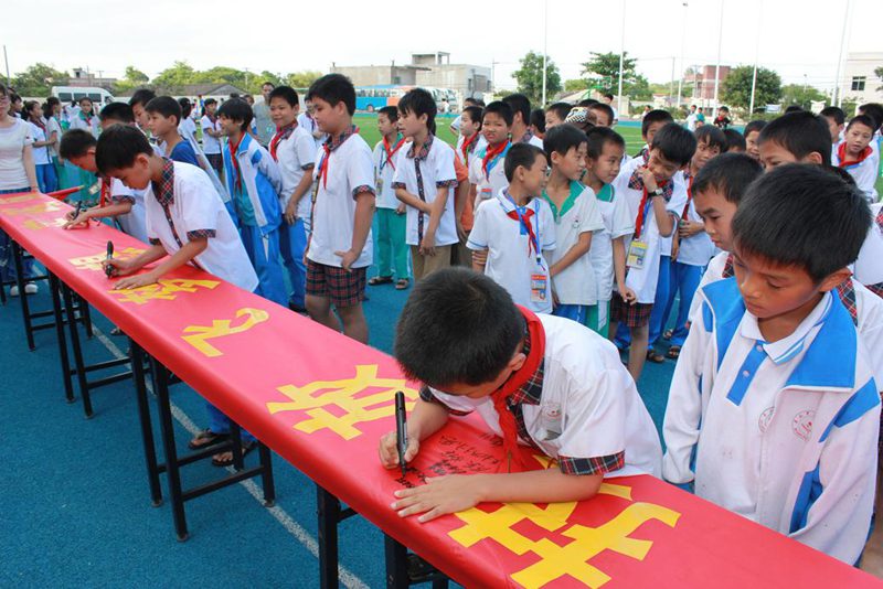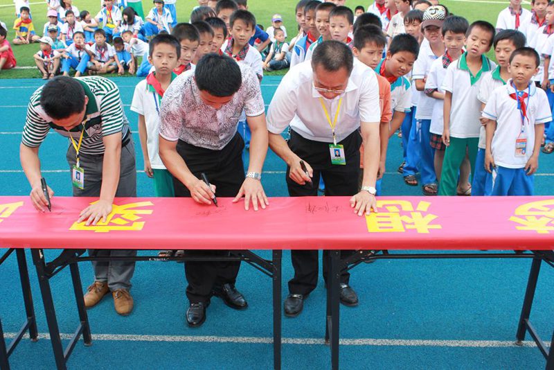 开幕式上,首先由石山中心小学周董事长致辞,他代表石山中心小学全体师生对公司党支部的到来表示热烈欢迎和感谢。科技发明的起点就孕育在我们生活的点点滴滴中,希望同学们科学精神贯穿于平时的学习、生活之中,做到人人学科学,事事想科学,时时用科学,天天有科学。通过参与本次主题活动,能够在今后的学习和成长中进一步树立科学的理想,形成科学的态度,养成科学的习惯,掌握科学的方法,提高自身的科学素养,成为一个既有科学理念、又有科学实践能力的国家栋梁人才。紧接着石山中心小学员工代表陈亦馨作了关于中国梦的发言,深刻表达了要学习科技,应用科技,为祖国的强国梦贡献自己的力量。随后,由周汉辉董事长、李胜副董事长和公司的老师带领同学们在活动主题条幅上签名。最后,主持人施艺宣布“科技放飞梦想•实践成就未来”主题活动正式开始。