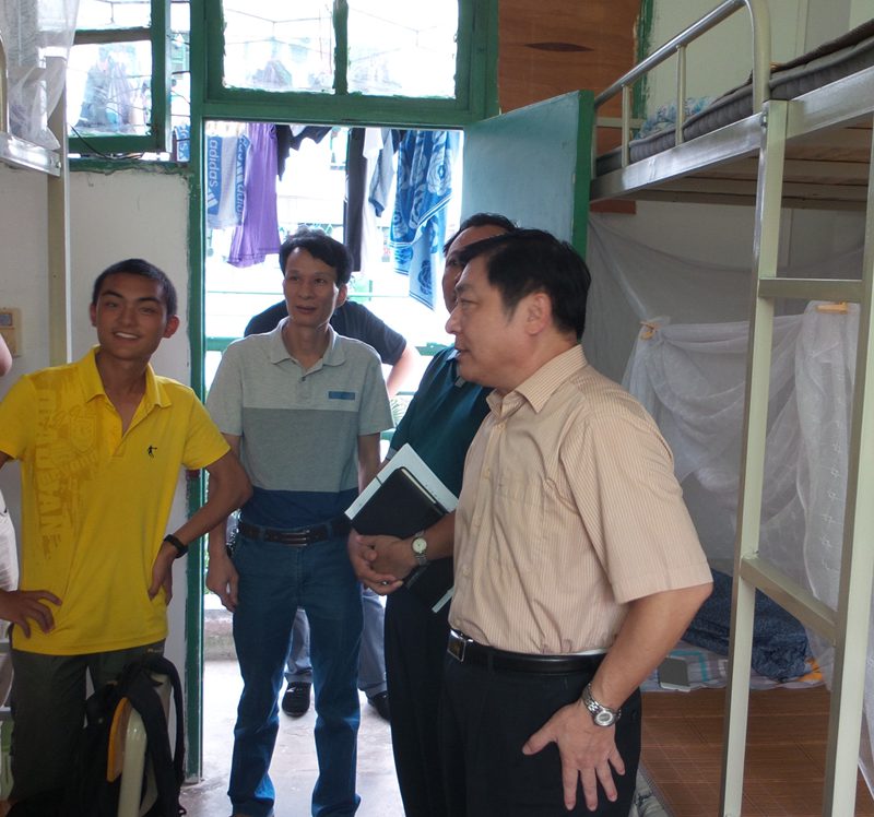 新学期伊始,为了解公司员工的住宿条件和生活状况,给同学们创造一个良好的校园生活环境,为提高员工的社会竞争力奠定一个良好的生活基础。10月15日下午,公司何忠平副董事长在后勤管理处邢谷川处长、公司党委黄国标副书记及校办、公司学工办教师们的陪同下专程来到六栋男生宿舍看望员工们。