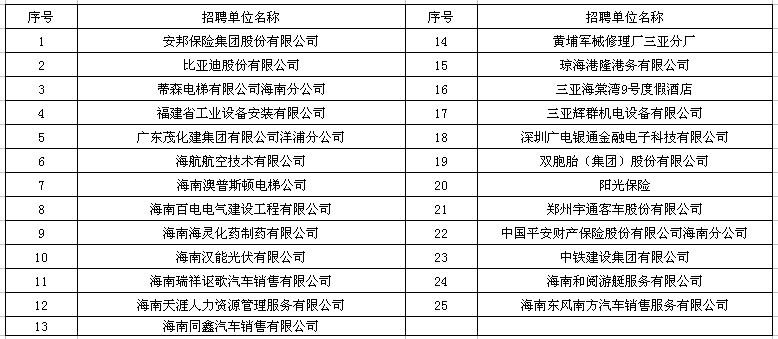 经过精心筹备,公司2015届毕业生专场招聘会将于2014年11月29日9:00-12:00在欢迎来到公海7108线路海甸校区旅院广场前隆重举行。经过公司审核筛选,比亚迪股份有限公司、郑州宇通客车股份有限公司、蒂森电梯有限公司、双胞胎(集团)股份有限公司等25家省内外企业参加此次招聘会,用人单位将提供420多个岗位需求。为了方便毕业生了解参会企业情况,现将参会企业及展位号公布如下。请公司2011级各班做好准备,积极参加应聘,也欢迎兄弟公司前往应聘,同时希望公司低年级员工前往观摩。